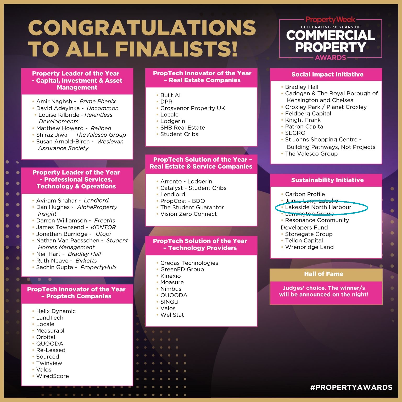Lakeside are proud to announce we are official finalists in the Sustainability Initiative category for the Property Weeks Commercial Property Awards 2026.