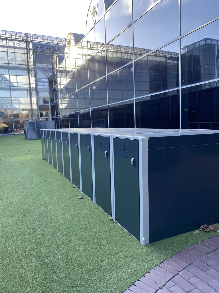 These are extra secure bike lockers which can be booked via the My Lakeside app.