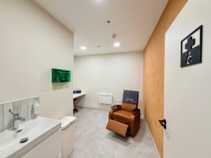 The room has also been designed as a space for individuals requiring first aid and anyone in need of a moment of quiet restoration. The result is a space that offers a medical-grade reclining chair, a dedicated lockable fridge for expressed milk, full handwashing facilities, clinical-grade fittings, soft lighting and a lockable door for complete privacy – all within a carefully designed, calming environment.