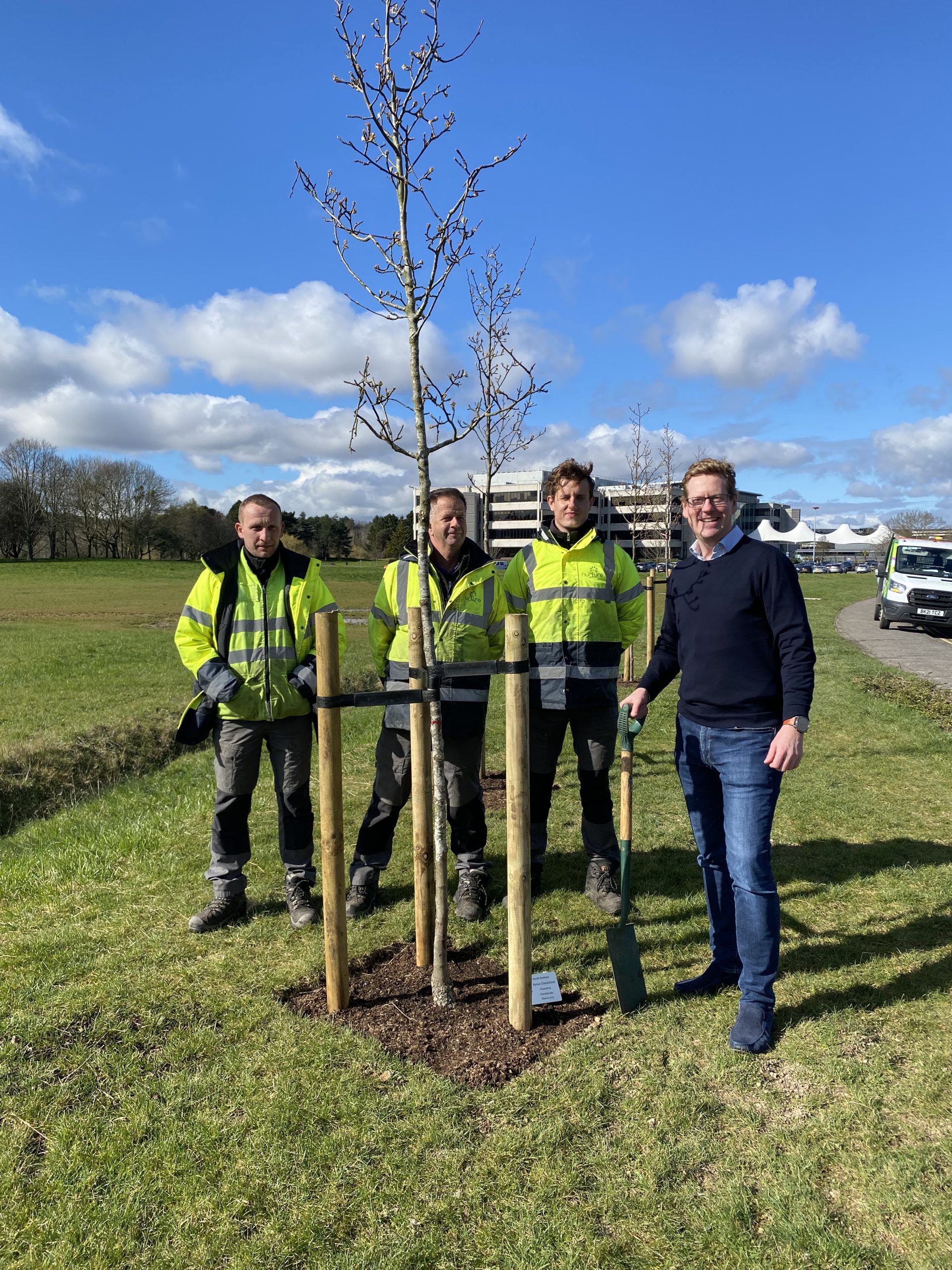 Building on previous sustainability initiatives on site, a group of occupiers have each sponsored a Pyrus Chanticlear tree. Sustainably sourced from a local supplier in Romsey, these ornamental pear trees produce bee-friendly blush and white flowers from Spring until Summer, also providing pollen for our resident bees in the ten hives located at LNH.